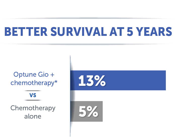 Nearly half of people usingOptune Gio + chemotherapy were alive at 2 years